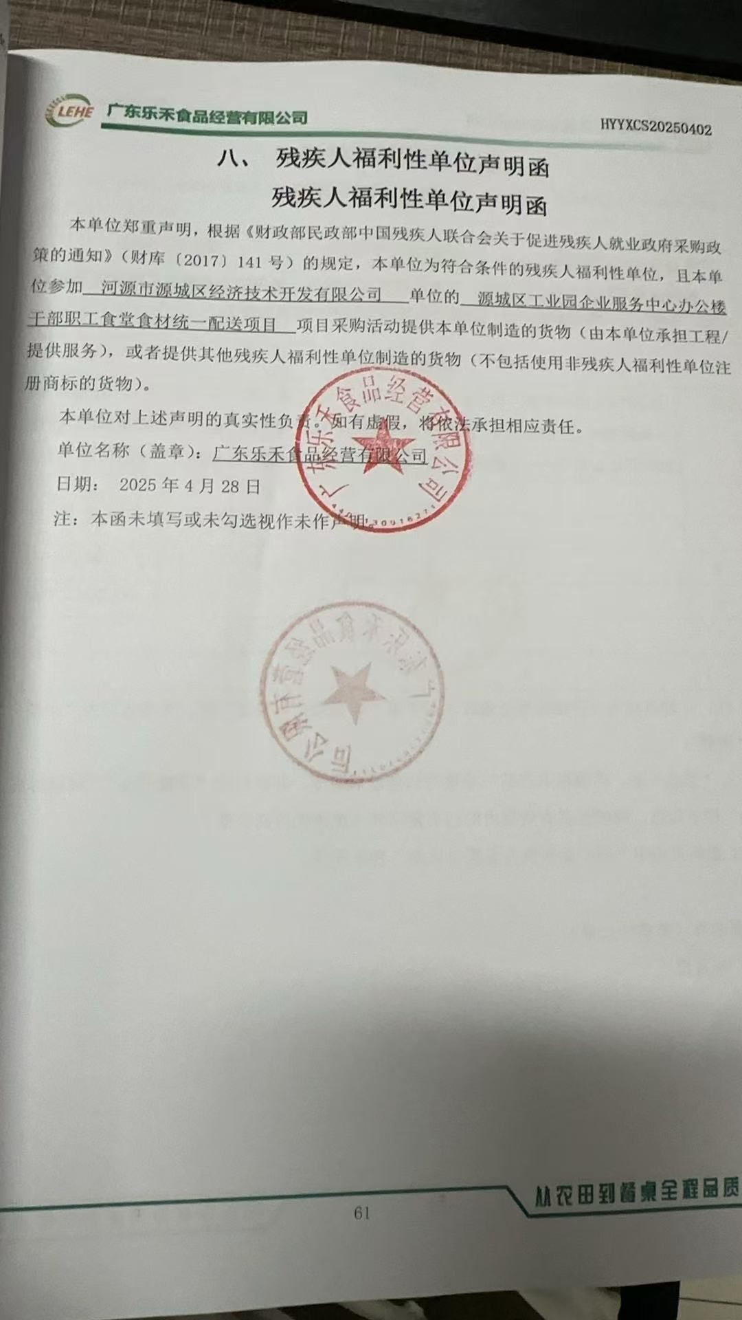 項目名稱:源城區(qū)工業(yè)園企業(yè)服務中心辦公樓干部職工食堂食材統(tǒng)一配送項目 合同履行期限:合同簽訂之日起配送服務期為 12個月 |